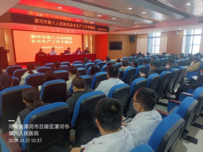 2024年1月21日上午,漯河市六院(市心血管病醫(yī)院)在住院部四樓會議室召開安全生產工作專題會,全體領導班子及全院中層干部參加會議。會議由紀委書記胡永生主持。