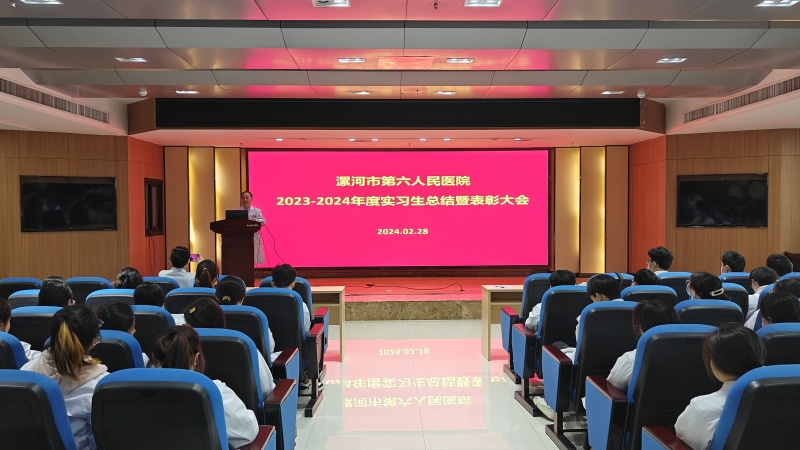 2024年2月28日下午,漯河市六院(市心血管病醫(yī)院)在住院部四樓會(huì)議室舉辦2023年度實(shí)習(xí)生總結(jié)暨表彰大會(huì),副院長(zhǎng)劉輝、醫(yī)務(wù)科科長(zhǎng)肖鳳珍、部分實(shí)習(xí)生帶教老師、全體實(shí)習(xí)生等50余人參加了會(huì)議。